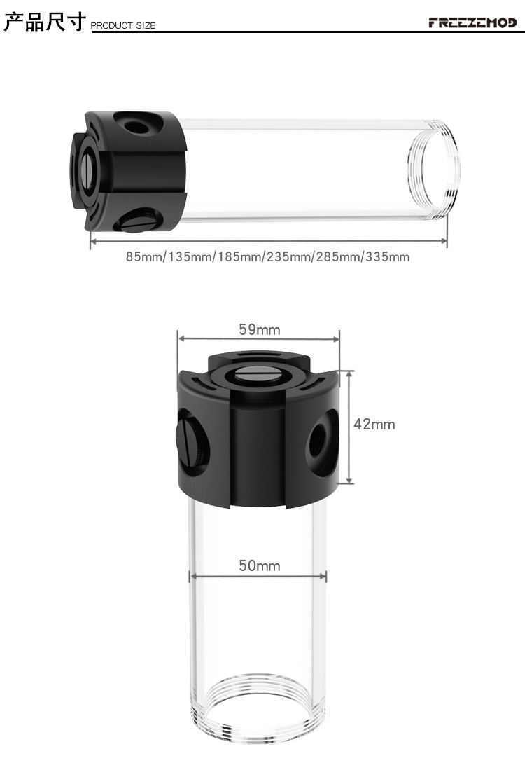 FREEZE水泵一体拓展水箱PJ-PM6SX多彩版金属盖50MM外径配一字堵头