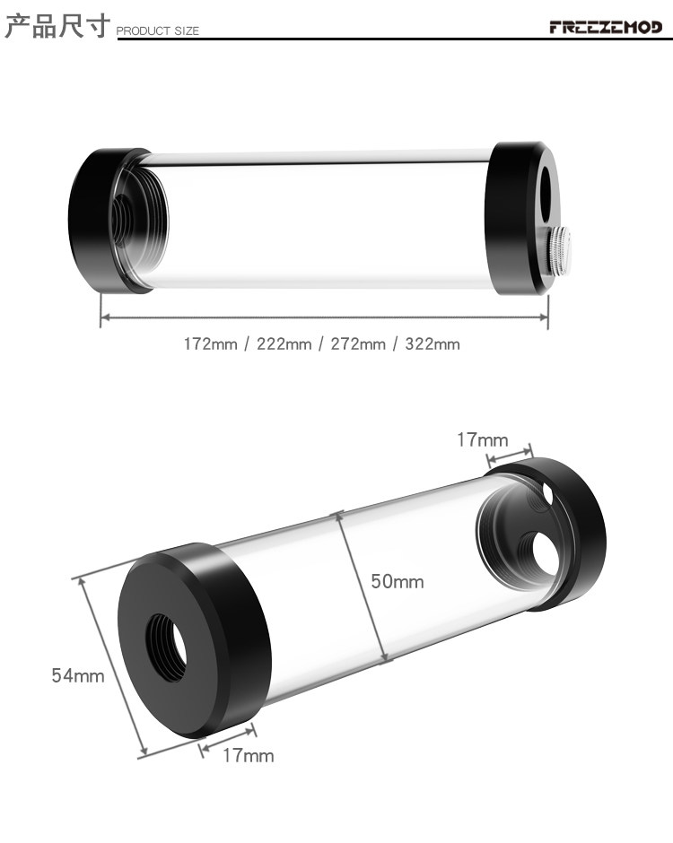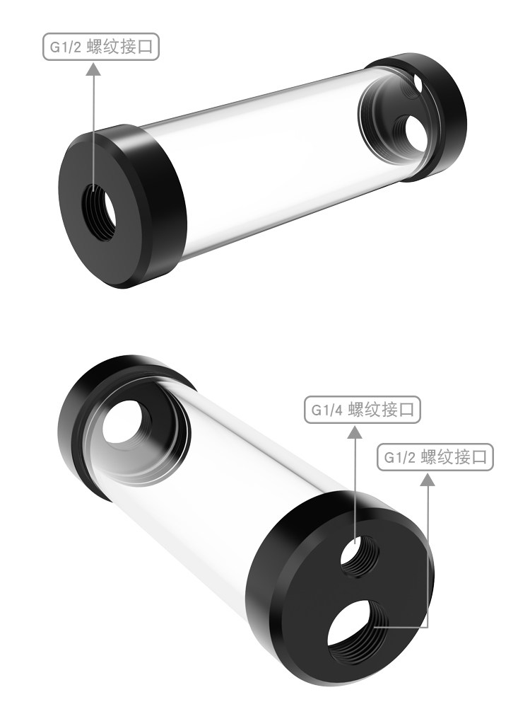 FREEZEMOD矿机水箱YSX-PMB-G4圆柱4分螺纹三孔POM盖G1/2直接50mm