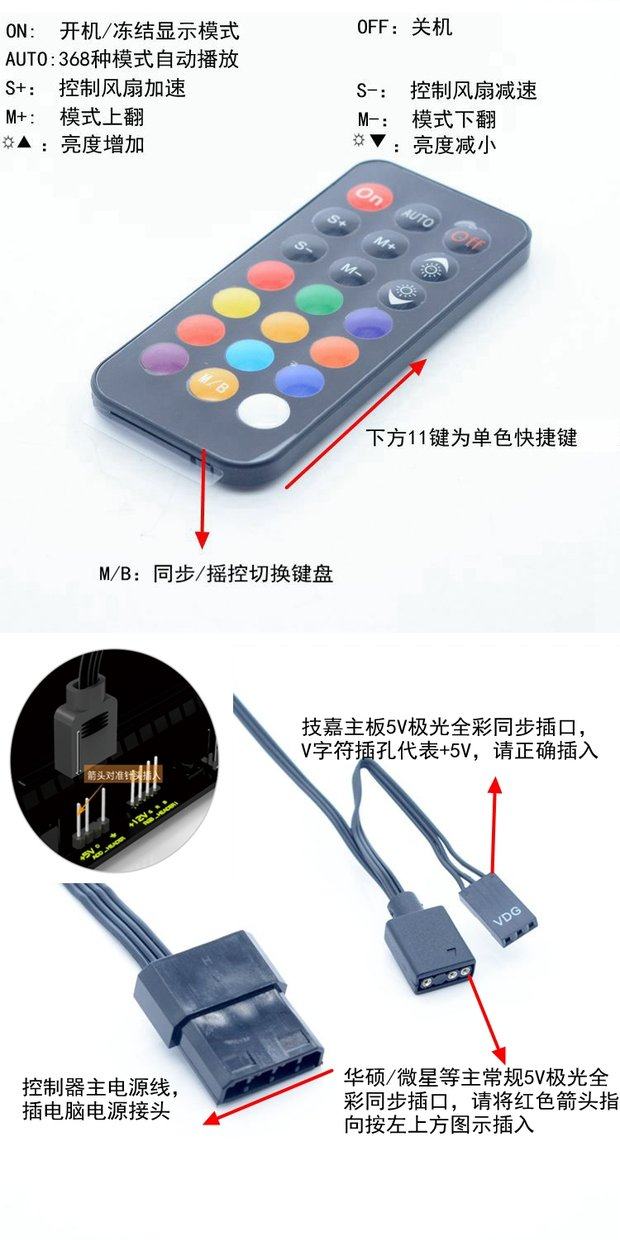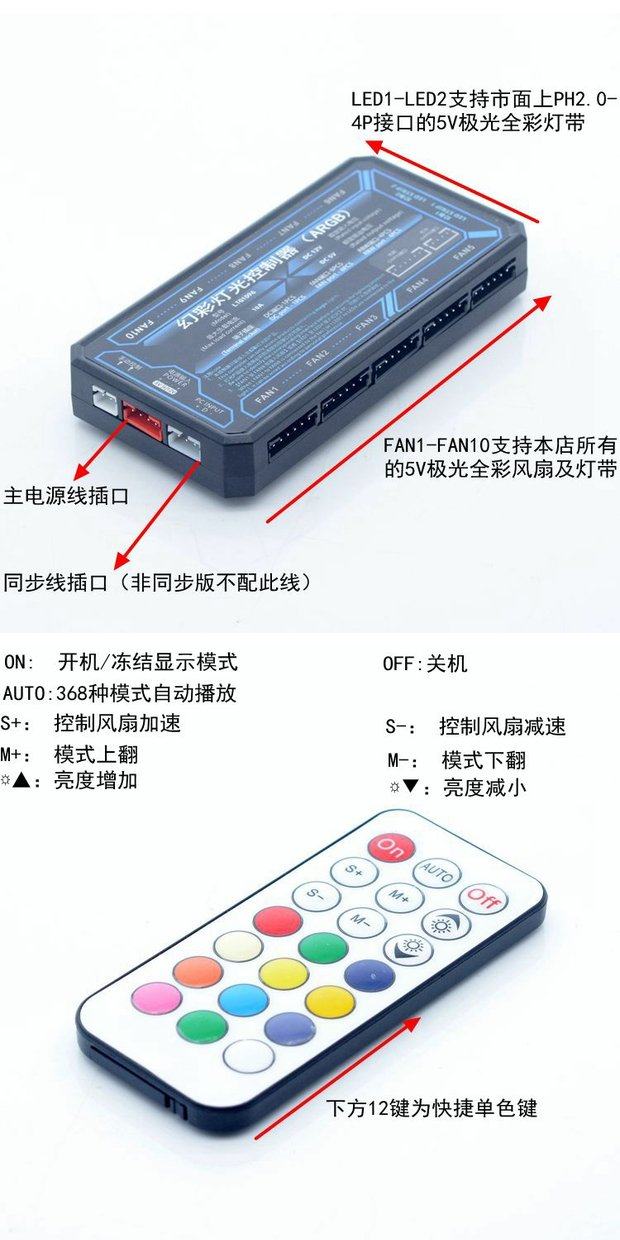 FREEZEMOD电脑水冷5V极光全彩彩虹遥控集线器CH-YKKZ-BX主板同步