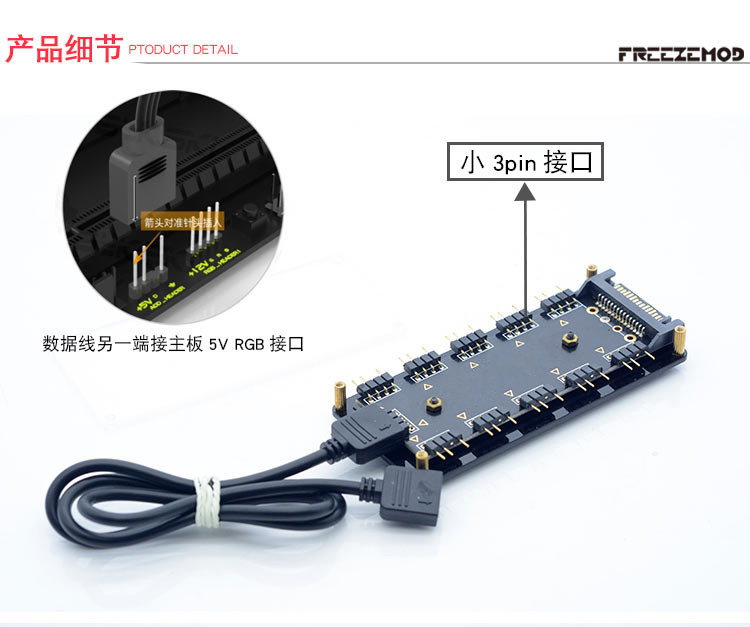 FREEZEMOD电脑水冷幻彩十路RBW集线器支持5V灯带风扇KZQ-SZ5