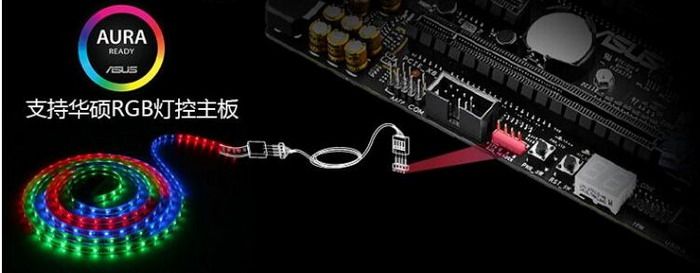 华硕AURA RGB同步的主板安装如下图,若想实现多条灯带控制,请店内另购转接线