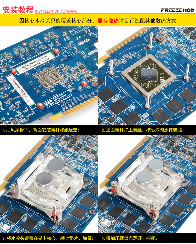 FREEZEMOD电脑显卡核心水冷头VGA-TMC支持53-62孔距喷射型吸热头