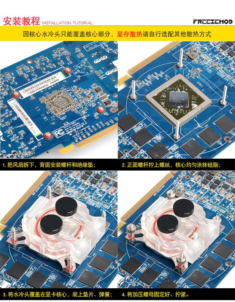 FREEZEMOD电脑显卡水冷头VGA-TMD支持43-53短孔距吸热头