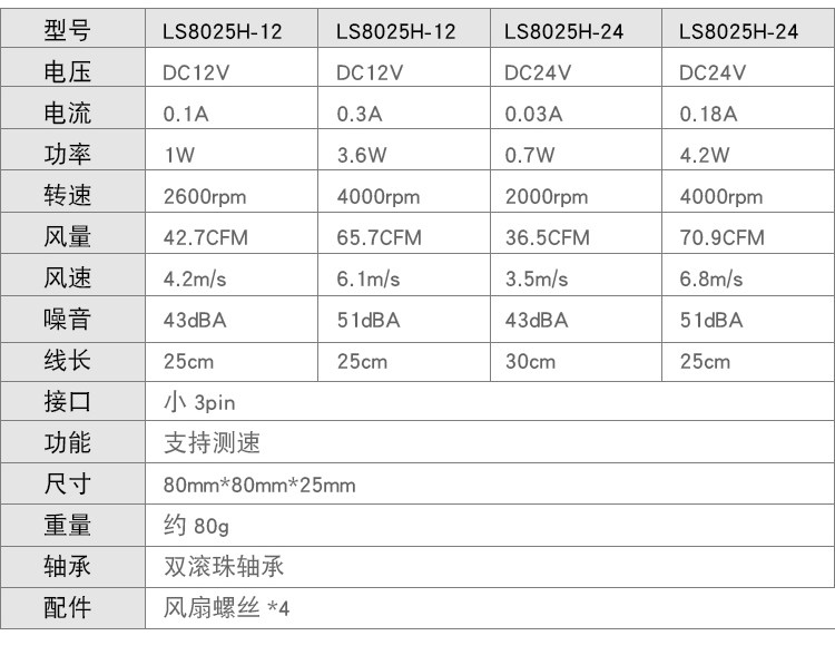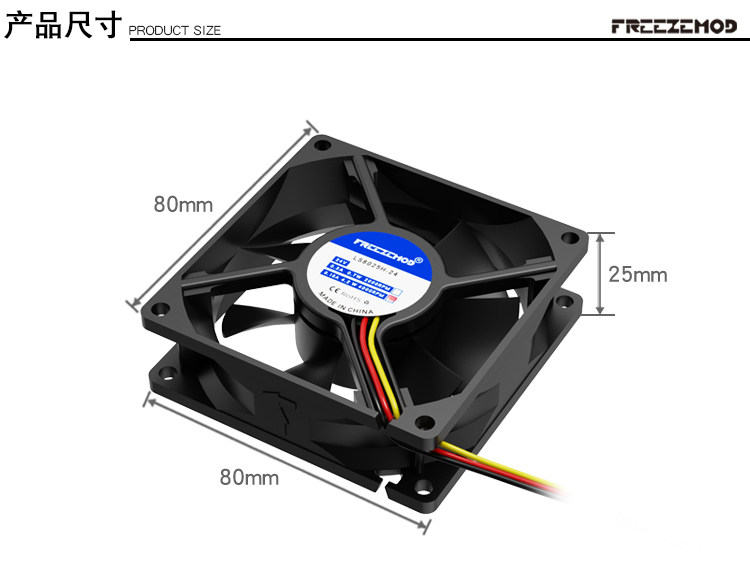 FREEZEMOD工业水冷散热风扇8cm双滚珠12-24V电压LS8025H转速4000