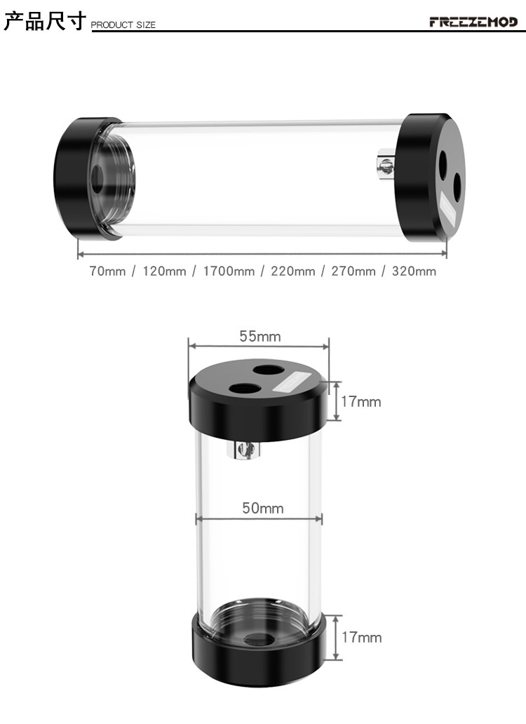 FREEZEMOD电脑水冷2020款YSX-PMB圆柱水箱三孔POM盖内置消泡器
