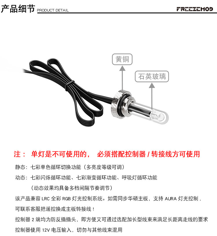 FREEZE RGB-D15 RGB打光堵头 水冷灯光 同步主板 AURA控制