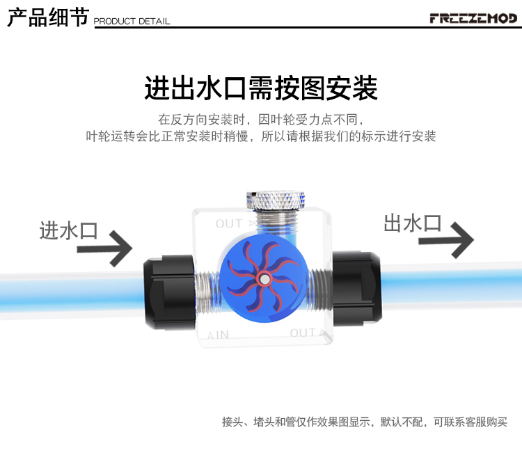FREEZEMOD水冷流速计LSJ-PM3水流计三通分流管1.29克轻薄叶轮工业