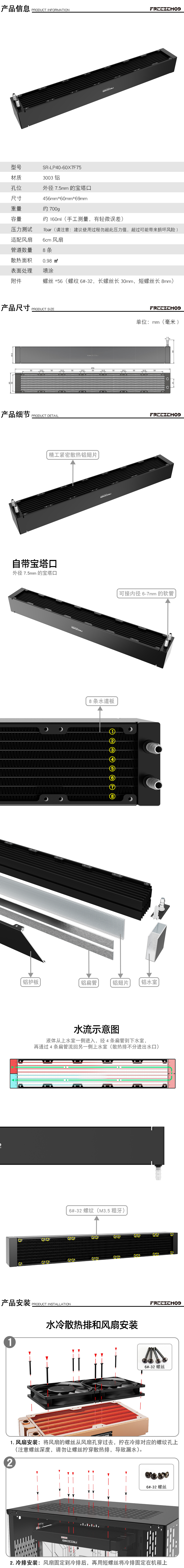 FREEZEMOD服务器水冷散热器7风扇位SR-LP40-60X7F75宝塔厚铝排6CM