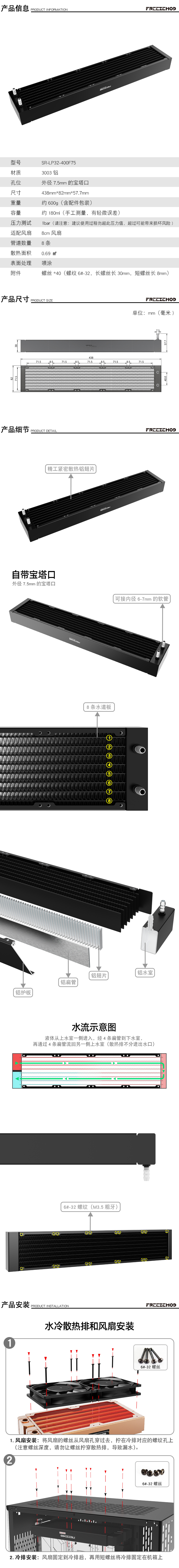 FREEZEMOD服务器2U水冷散热器5风扇位SR-LP32-400宝塔铝排加厚8CM