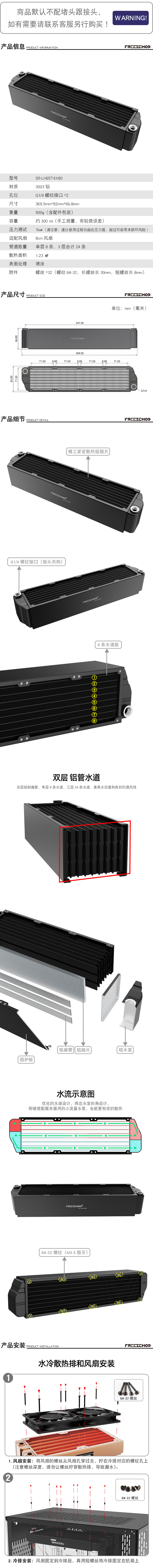FREEZEMOD服务器水冷8CM散热排SR-LH65T4X80铝排65mm厚3层Z水道