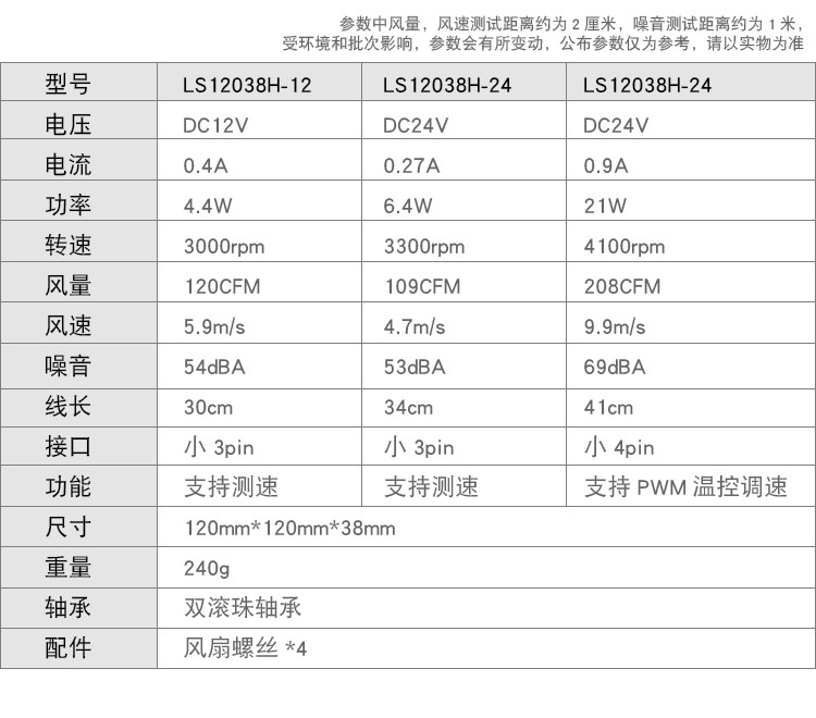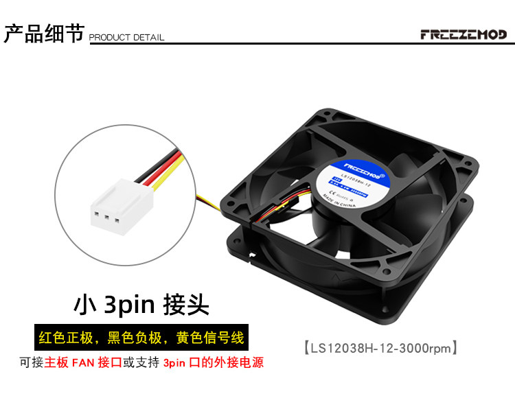 FREEZEMOD双滚珠大风量12038散热风扇12-24V电压4000转速LS12038H