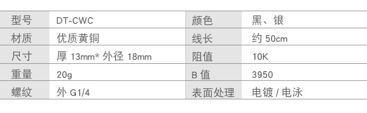 FREEZEMOD黄铜测温堵头3950温度传感器10K防水DT-CWC外螺纹多接口