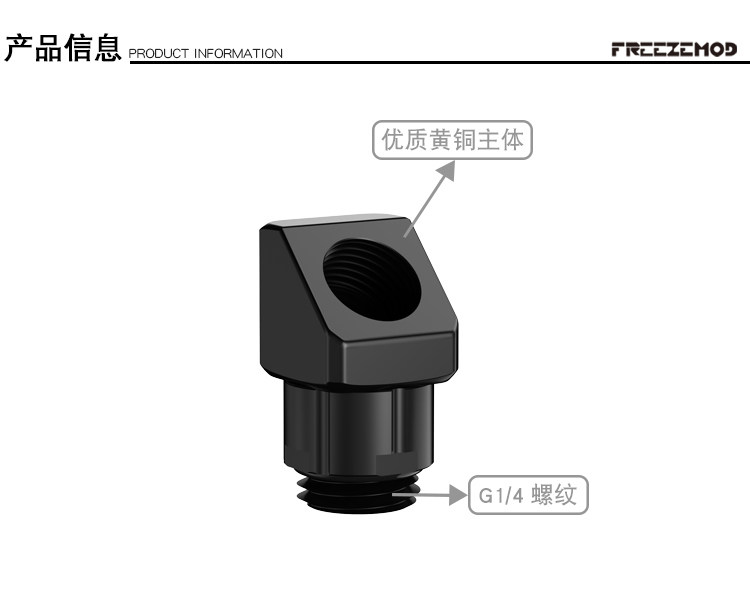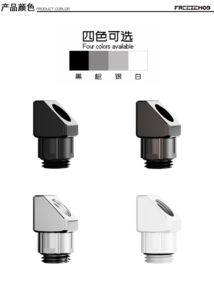 FREEZEMOD水冷接头360度旋转GXZWT-D45螺纹换向45度2023款光面