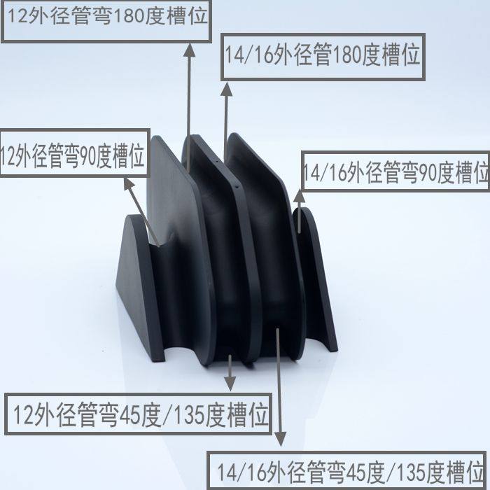 本工具可加工外径12mm/14mm/16mm硬管,总共分为4条槽位,最窄2条加工12mm,最宽2条加工14mm/16mm