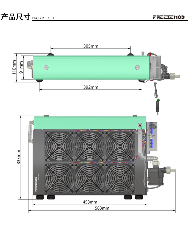 FREEZEMOD大功率散热模组SLMZ-S-H大屏显示手自一体调速电脑控制