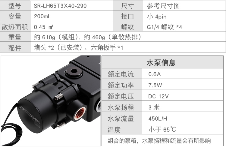 FREEZEMOD一体式小型液冷模组含泵机器人无人机SR-LH65T3X40-290