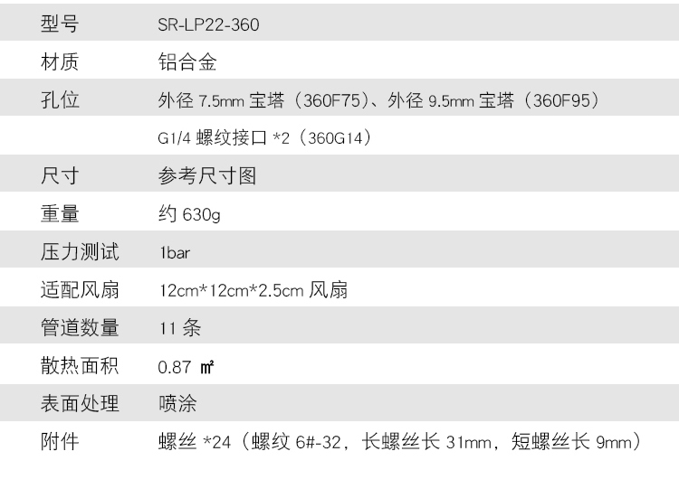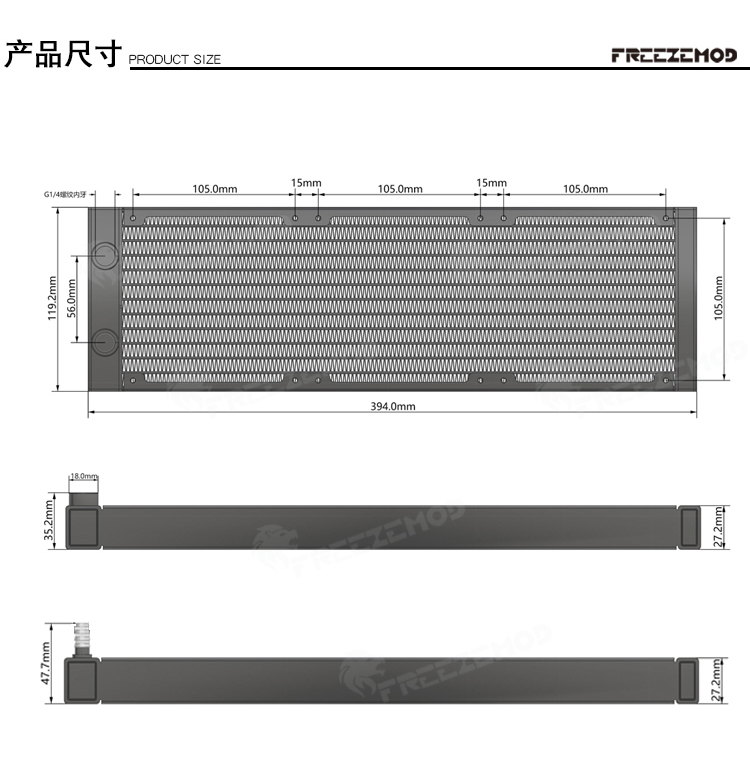 FREEZEMOD水冷铝散热排SR-LP22-360医疗打印激光宝塔口22厚扁管 ¥