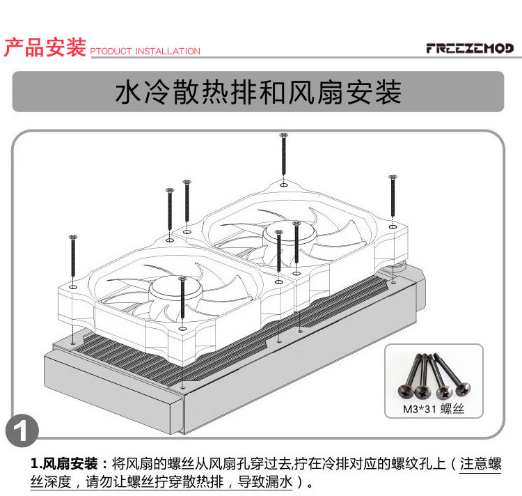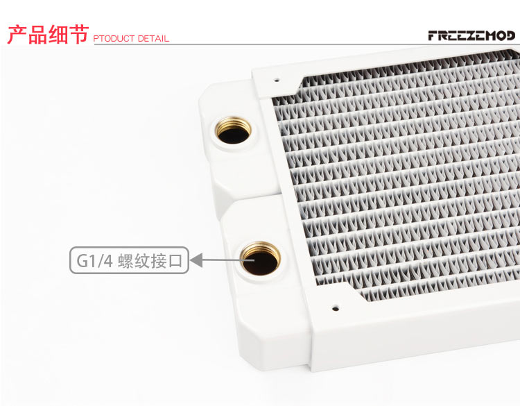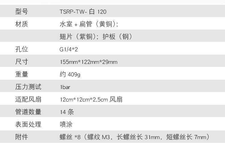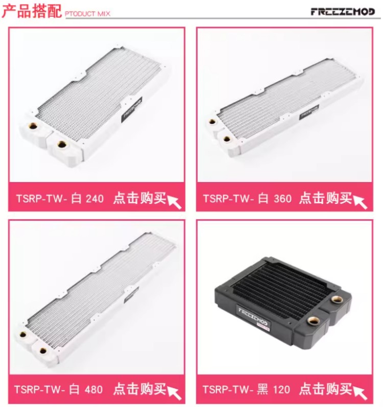FREEZEMOD工业水冷铜散热排14扁管TSRP-TW120钢琴白紫铜翅片12CM