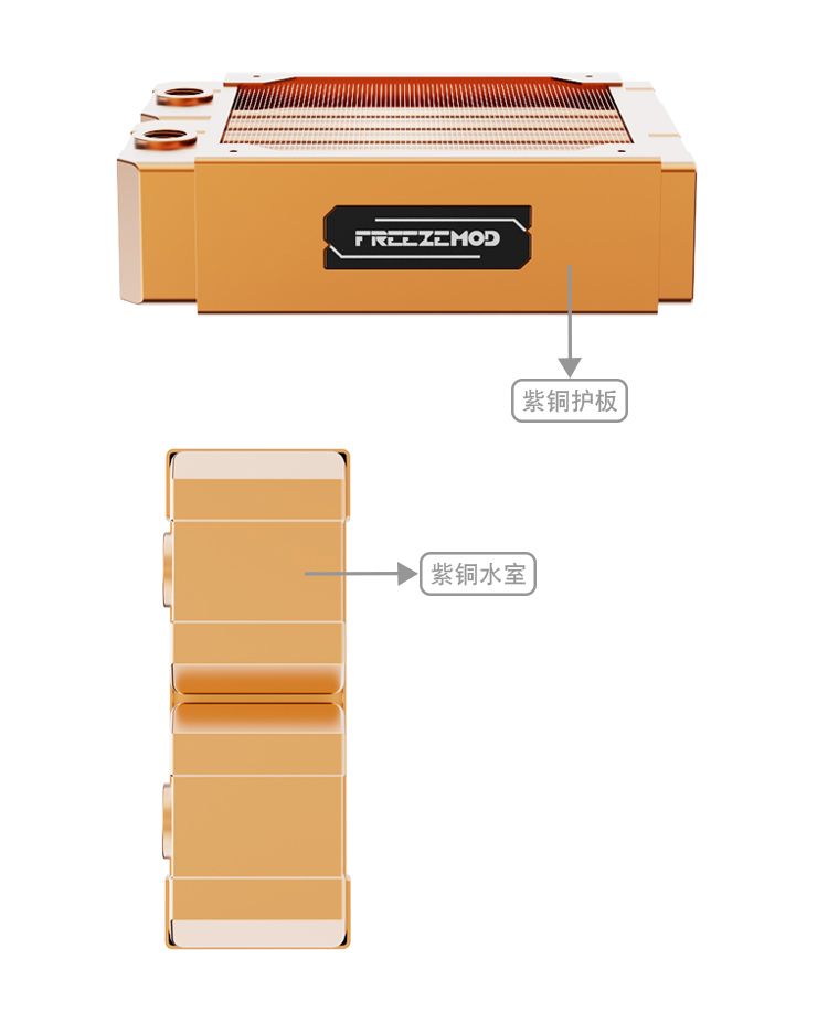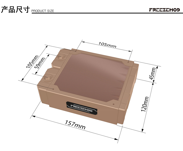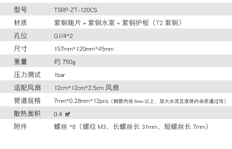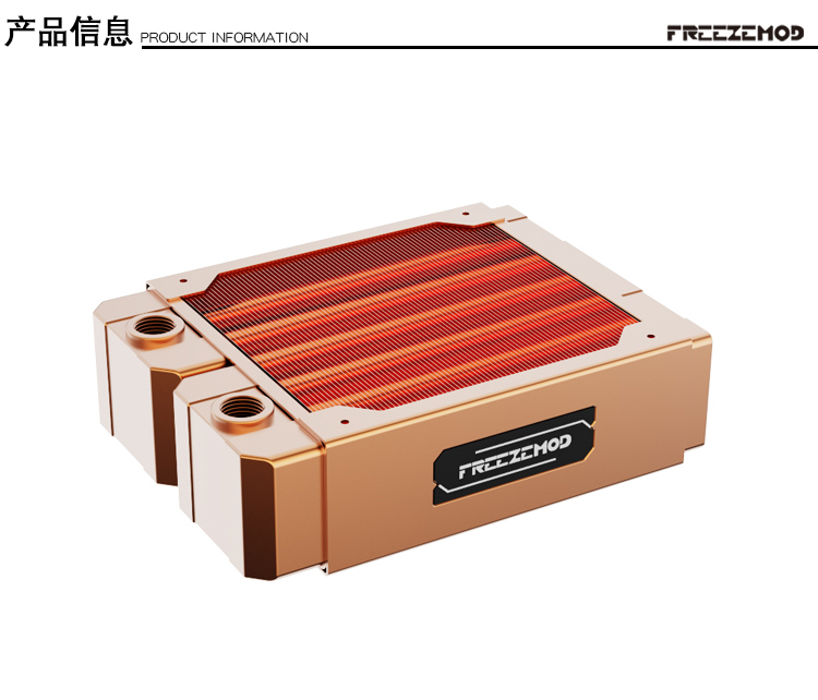 FREEZEMOD全紫铜水冷工业散热排7mm管TSRP-ZT-120SC螺纹双层45mm