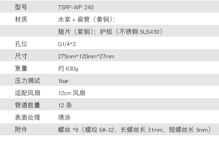 FREEZEMOD电脑水冷TSRP-WP240铜散热排烤漆白色ROHS认证紫铜翅片