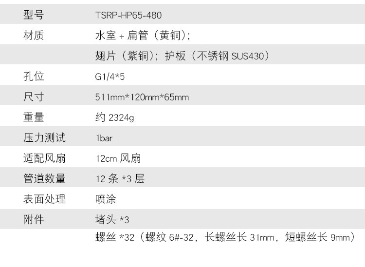 • FREEZEMOD工业水冷三层65MM厚铜排TSRP-HP65-480散热排紫铜翅片