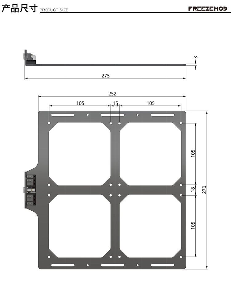 FREEZEMOD全铝合金水冷双散热排安装支架BJ-360配DC口集线器3mm厚