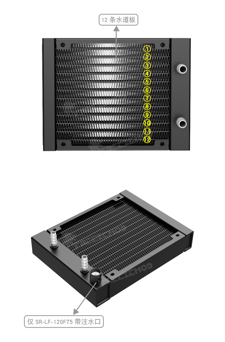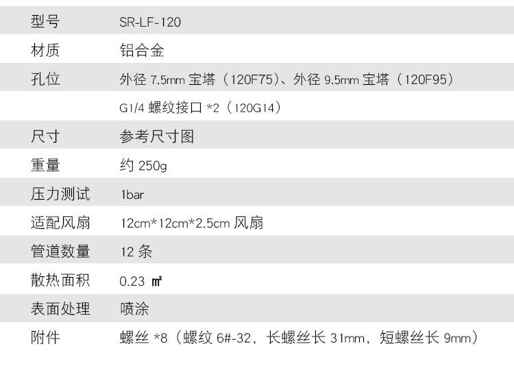 • FREEZEMOD方形铝散热器SR-LF120螺纹芯体16厚耐压2.5kg生物制药