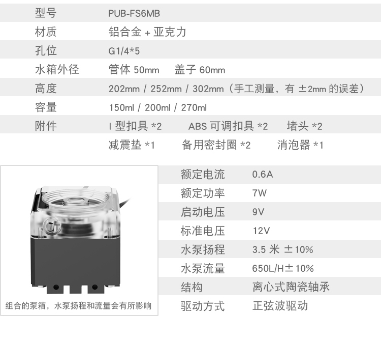 FREEZEMOD水泵水箱一体式PUB-FS6MB内置消泡器电脑水冷