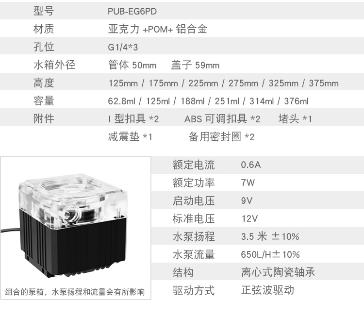 PUB-EG6PD-12CM高度(带5V灯效,备注泵箱颜色)