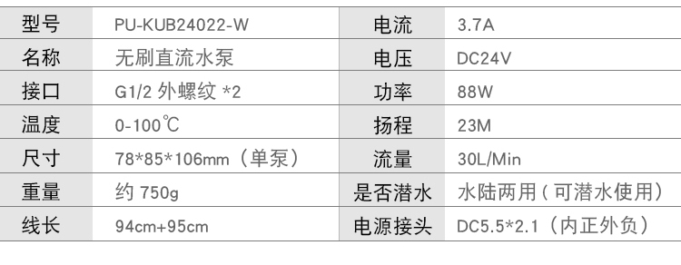 FREEZEMOD循环水泵24V耐高温PU-KUB外置控制板88W功率23米扬程