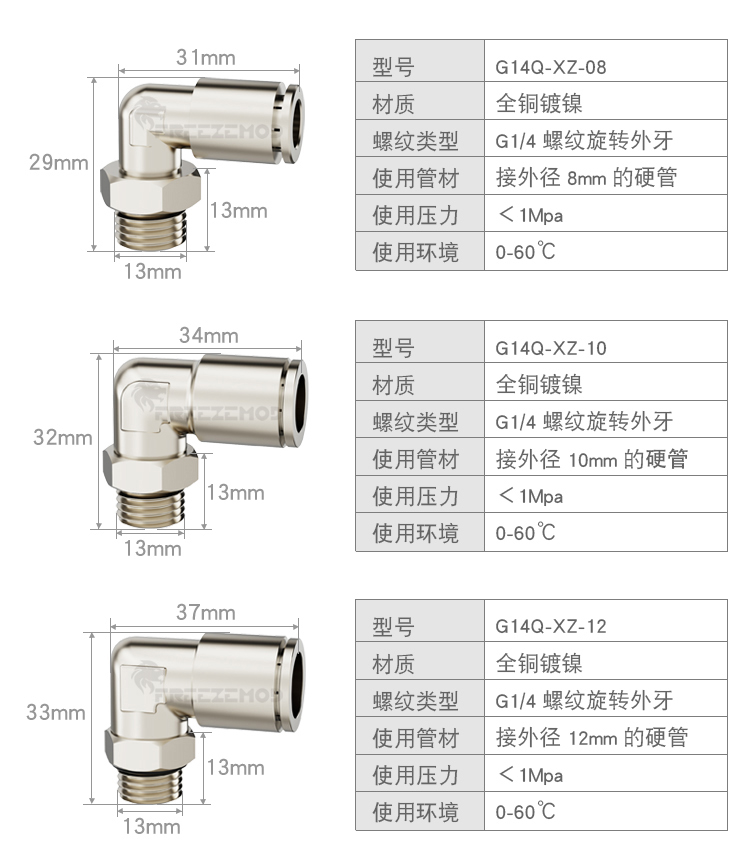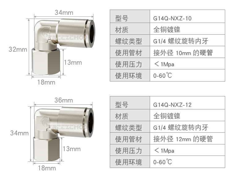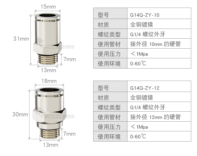 FREEZEMOD散热器水箱旋转硬管接头G1/4内外牙六角扳手位黄铜镀镍