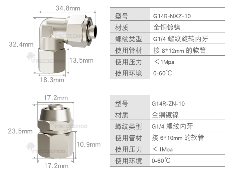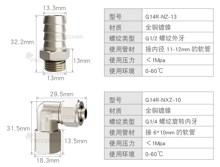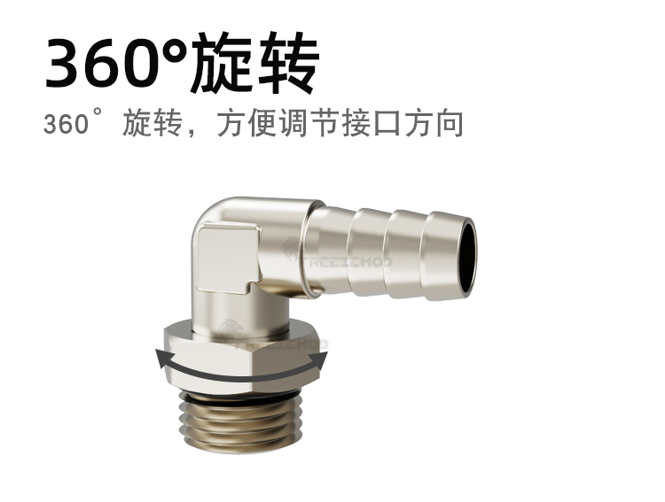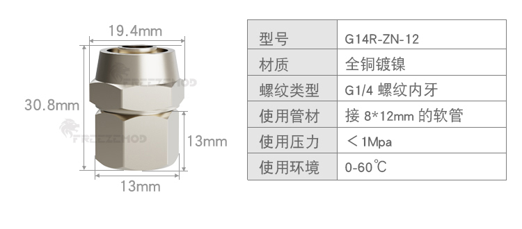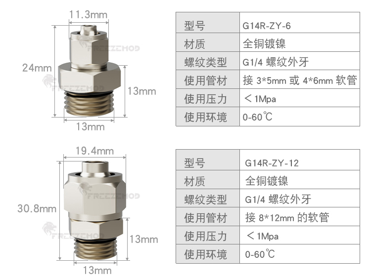 FREEZEMOD散热器水箱旋转软管接头G1/4内外牙六角扳手位黄铜镀镍