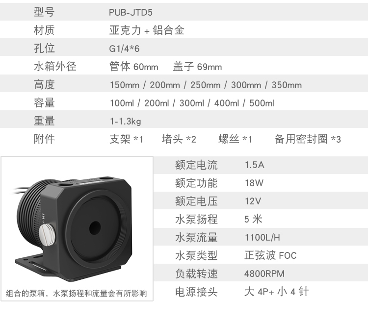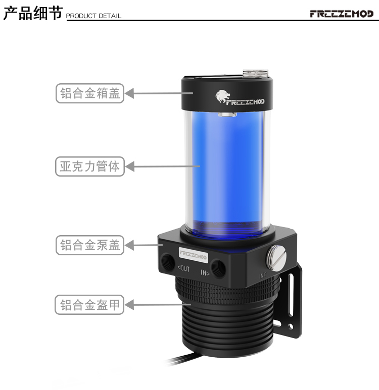 FREEZEMOD水冷磁悬浮水泵水箱一体式PUB-JTD5全金属PWM智能温控