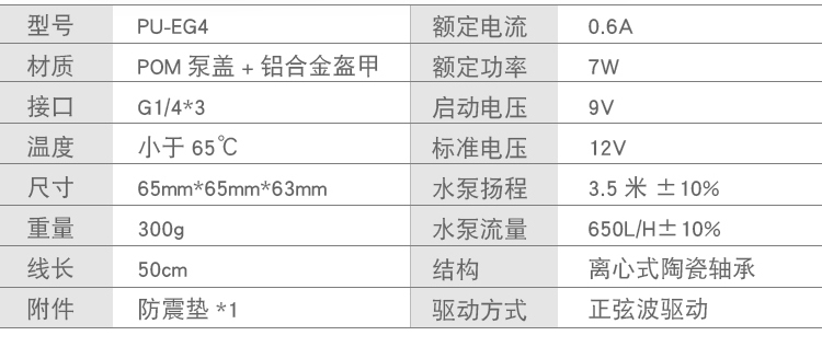 FREEZEMOD循环水泵PU-EG4水冷静音支持PWM金属盔甲POM上盖650L/H