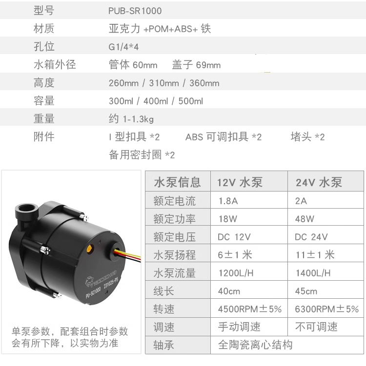 FREEZEMOD水冷泵箱一体PUB-SR1000扬程11米流量1400L内过滤12-24V