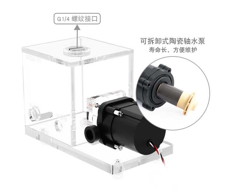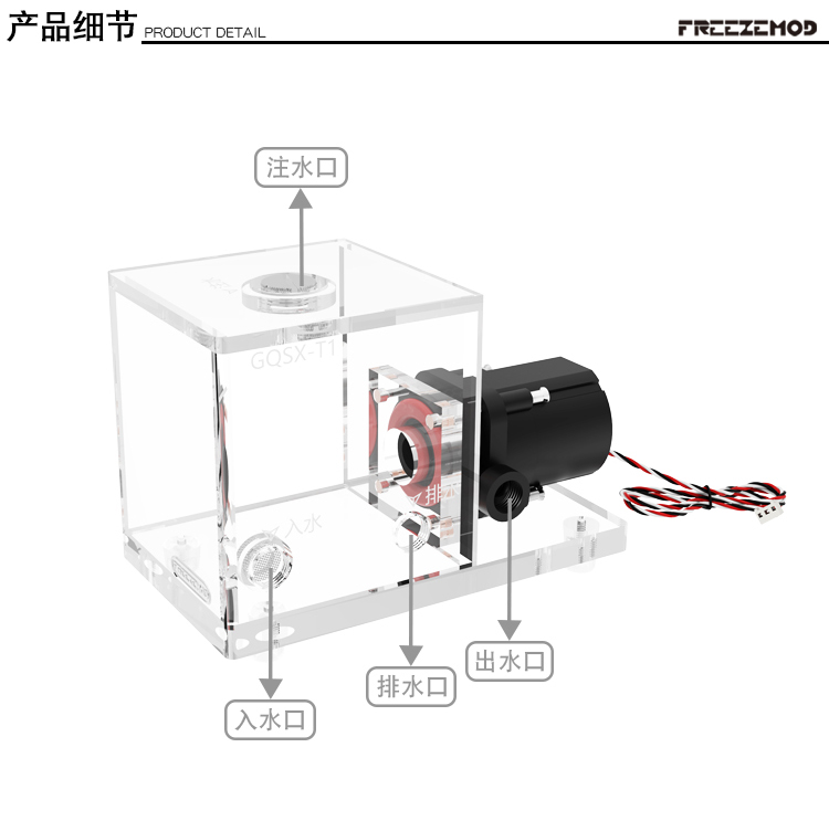 FREEZEMOD工业笔记本水冷GQSX-T1全透明一体水箱600L/H容量500ML