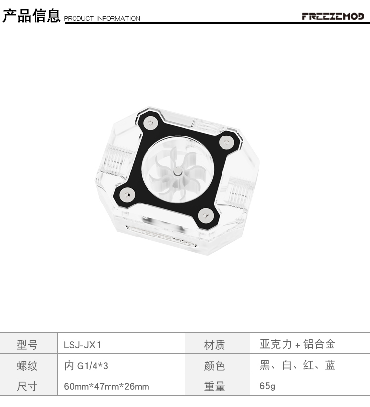 FREEZEMOD电脑水冷流速计LSJ-JX1多色水叶轮铝金属盔甲G1/4螺纹