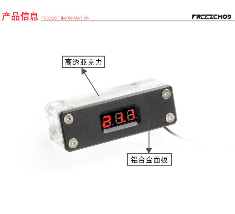FREEZEMOD电脑水冷温度显示数字监测WDXS-T1透明亚克力版清仓特惠